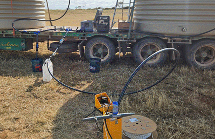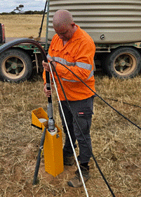 Figure 1. Rendement Principal Hydrologist Ben Jeuken installing a downhole pump in the Boland Wellfield and the pump test currently underway.
