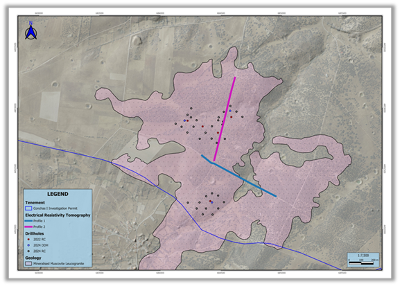 · Conchas hosts shallow, thick zones of lithium (Li) and rubidium (Rb) mineralisation, with accessory tin (Sn), caesium (Cs), beryllium (Be), niobium (Nb) and tantalum (Ta) within a muscovitic leucogranite unit